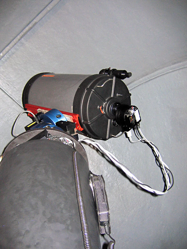 Das neue Teleskop, ein C14 der amerikanischen Firma "Celestron", mit einer Öffnung von 356mm, einer Brennweite von 3910mm und einer XLT-Vergütung der optischen Oberflächen ist jetzt das Hauptinstrument der Sternwarte IOP.