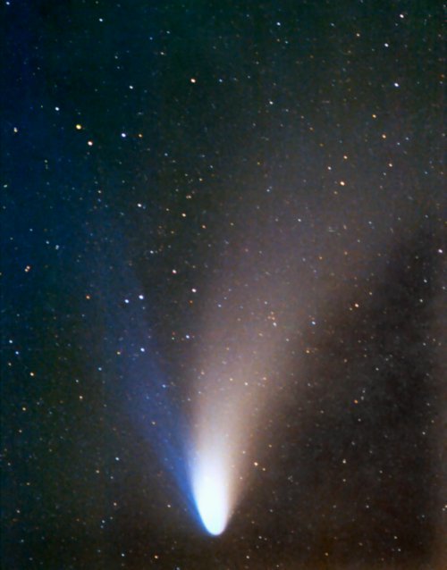Komet C/1995 O1 "Hale-Bopp" blauer Gasschweif vom Staubschweif getrennt