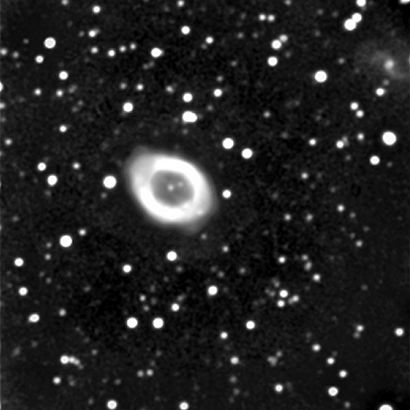 M57 NGC6720 und IC1296 SBbc Galaxie Planetarischer Nebel "Ringnebel" , Ø71" , mag 9.7 15.1mag 1.1' x 0.8' 14.09.2002 00:53...01:40 MESZ 24min belichtet 70cm Teleskop f/1:15 |